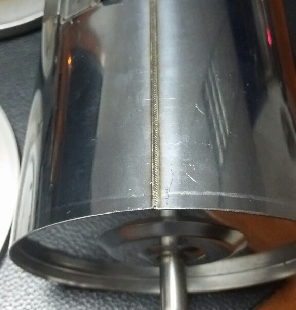 一個(gè)不銹鋼水桶內(nèi)膽,多處采用了激光焊接技術(shù)。