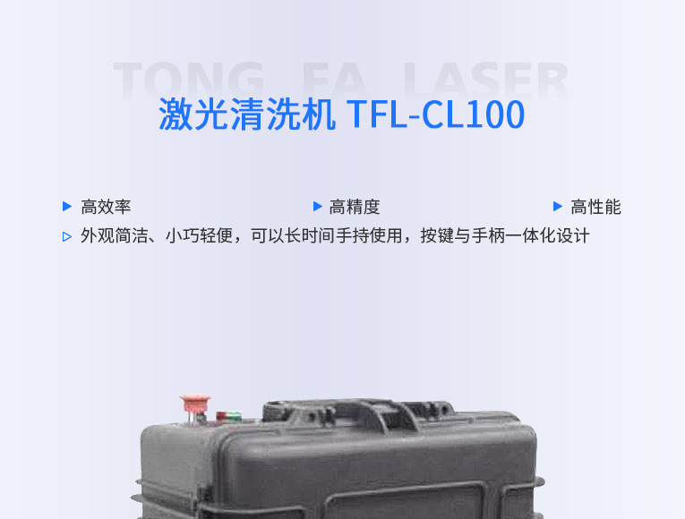 該清洗機依托MOPA 結構的優勢,配備 100W 清洗式脈沖光纖激光器作為清洗光源,激光器采用主振蕩器功率放大 MOPA(Master Oscillator Power Amplifier)結構,其中主振蕩利用半導體激光器作為種子源,功率放大則通過行波光纖放大器來實現。本款 MOPA 光纖激光器具有脈沖寬度和頻率獨立可調的特點,在對脈寬和頻率進行改動的情況下仍可保持較高的穩定峰值功率輸出,以適應更廣泛的清洗場景。
